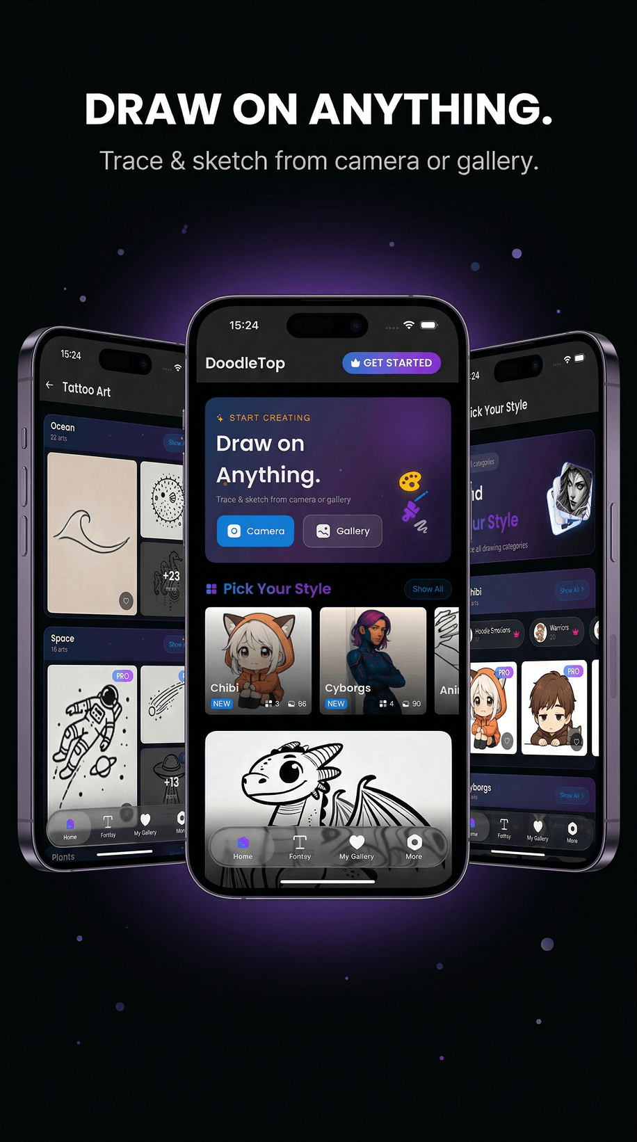 One app, three powerful sketch modes. Whether you're a beginner or a pro, find the style that fits how you create.